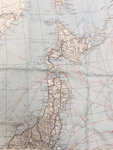 今回は、1940年代にアメリカ陸軍航空隊がパイロットに支給したクロスチャートを分析します。 文字通りクロス(布)に描かれたチャート(図表)で、今回のモデルは地図になります。 用途から「エスケープマップ」とも呼ばれていますね。 とても詳細にプリント…