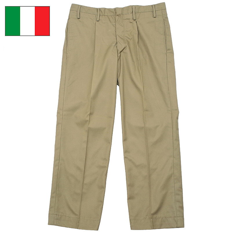 イタリア軍 E.I チノパンツ カーキ オールドスタイル ボタンフライ デッドストック メンズ ワイドパンツ 伊軍 EI 陸軍 実物 本物 タック ズボン