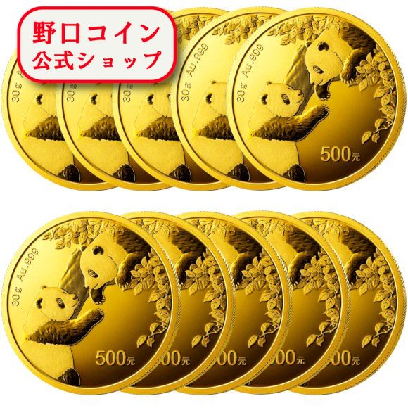 即納 2023 30グラム 中国 パンダ 金貨 【10枚】セット 真空パック入り 新品未使用 500元【弊社発行保証書付き】