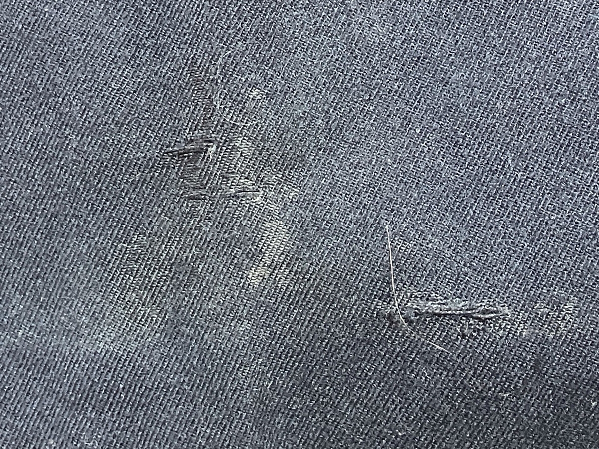そうそう今回のモデルは、時代を考えれば極上品なのですが、右足首ポケット表面に、何かで擦れた穴が開いていました。