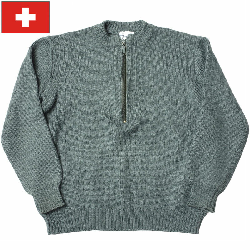 スイス軍 マウンテン ジッパーセーター グレー USEDハーフジップ メンズ モックネック ミドルゲージ PT10